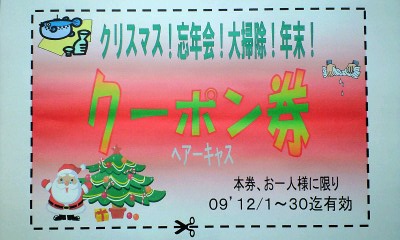 有効期限 12/2(水)~12/30(水)迄 誤り(クーポン券には、12/1 となってますが・・・火曜日で、お休みです)